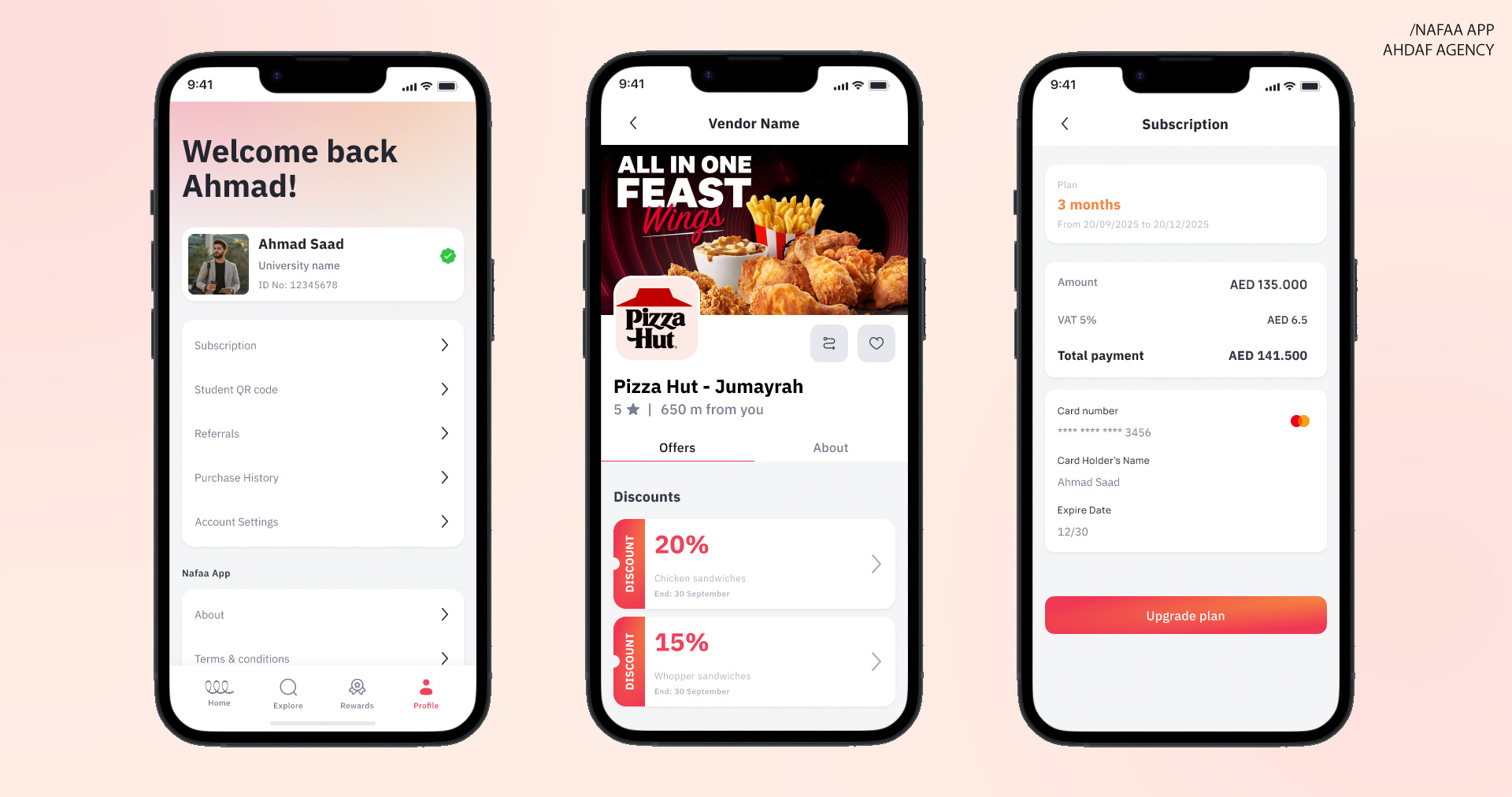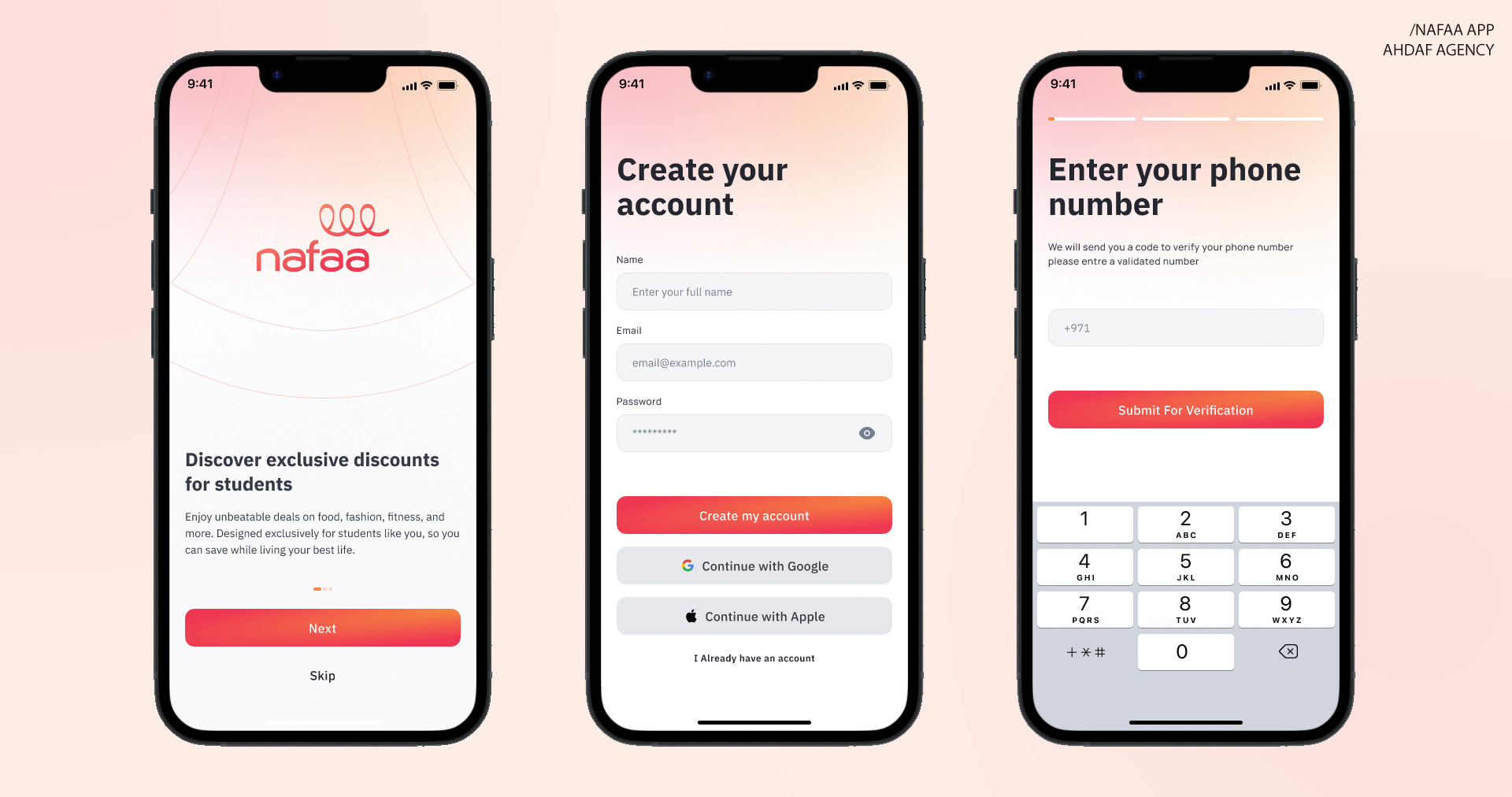Nafaa is a new mobile application in the UAE created to help students access exclusive discounts and offers from trusted local and international brands. Ahdaf Digital designed and developed Nafaa’s complete digital presence, including the UI/UX design, mobile app, and website. The app delivers a smooth and elegant experience, making it easy for students to discover deals while maintaining a modern and youthful identity that fits perfectly with the student lifestyle in the Emirates.